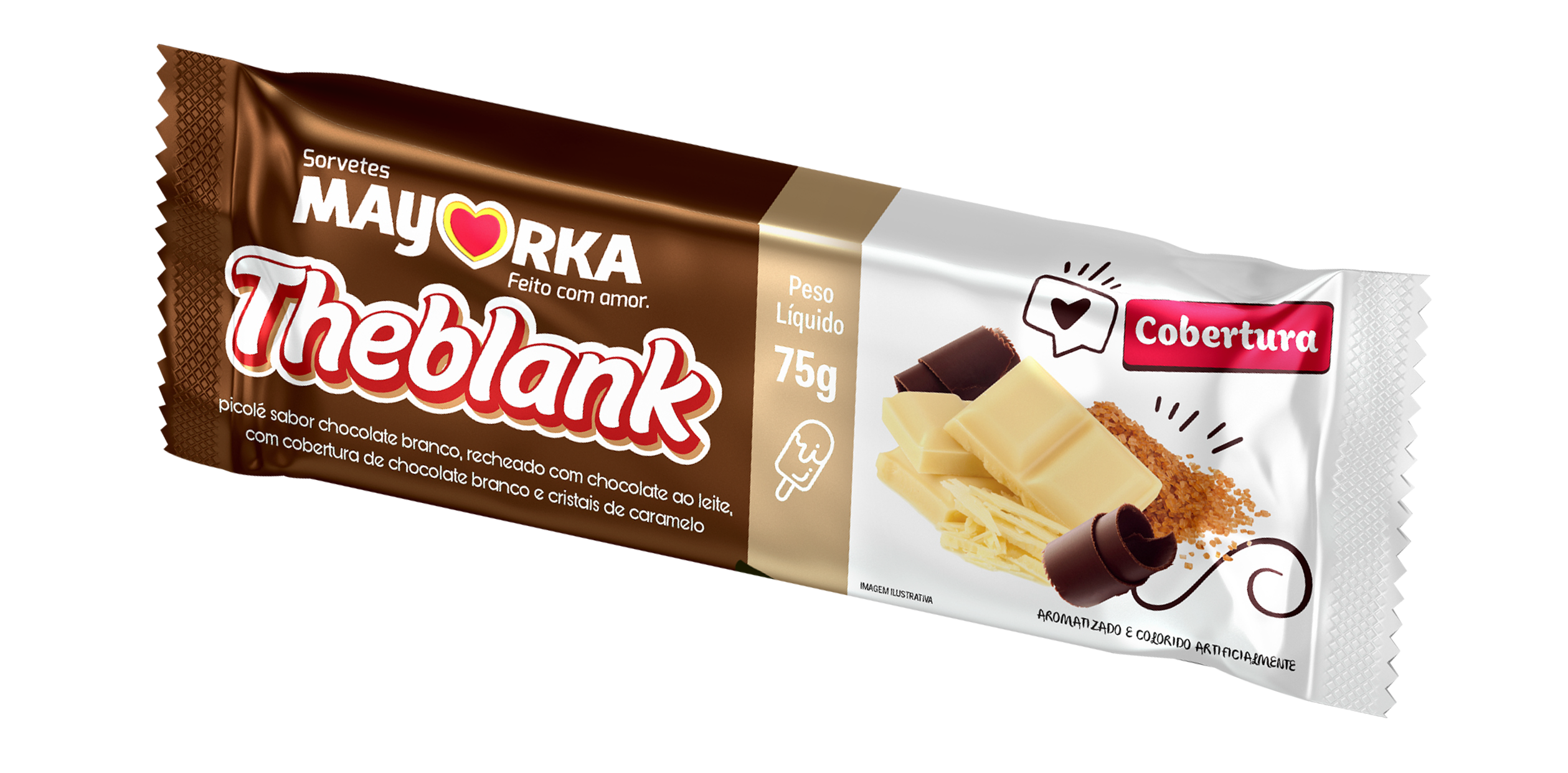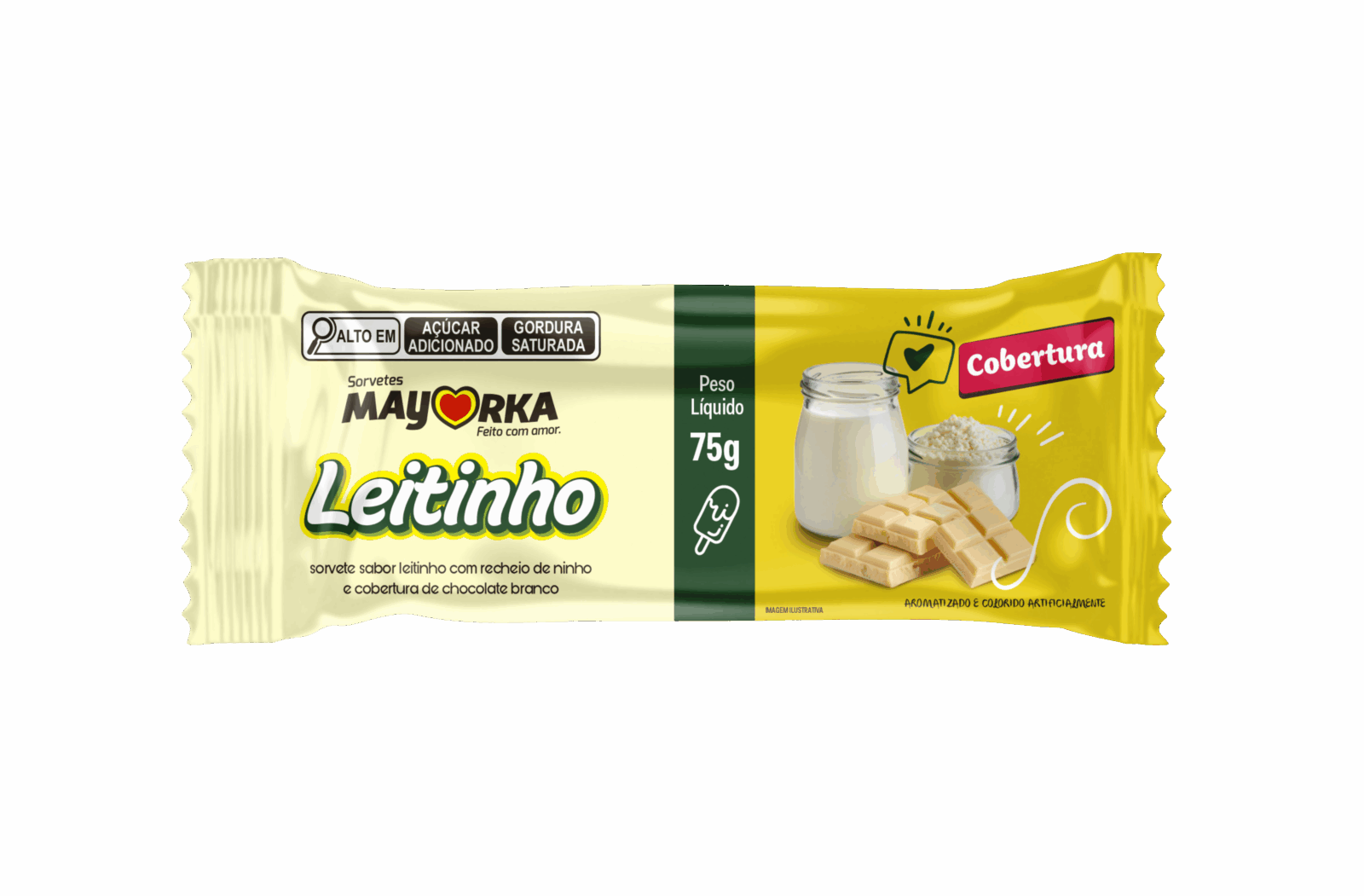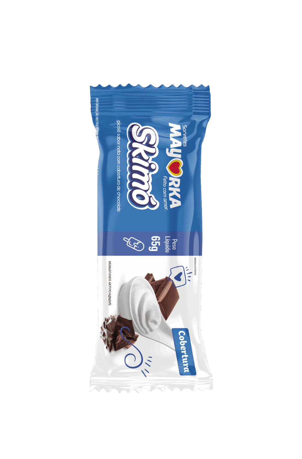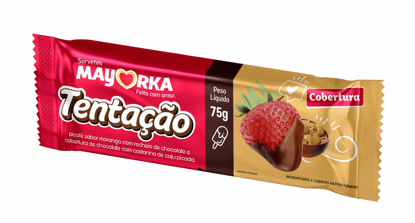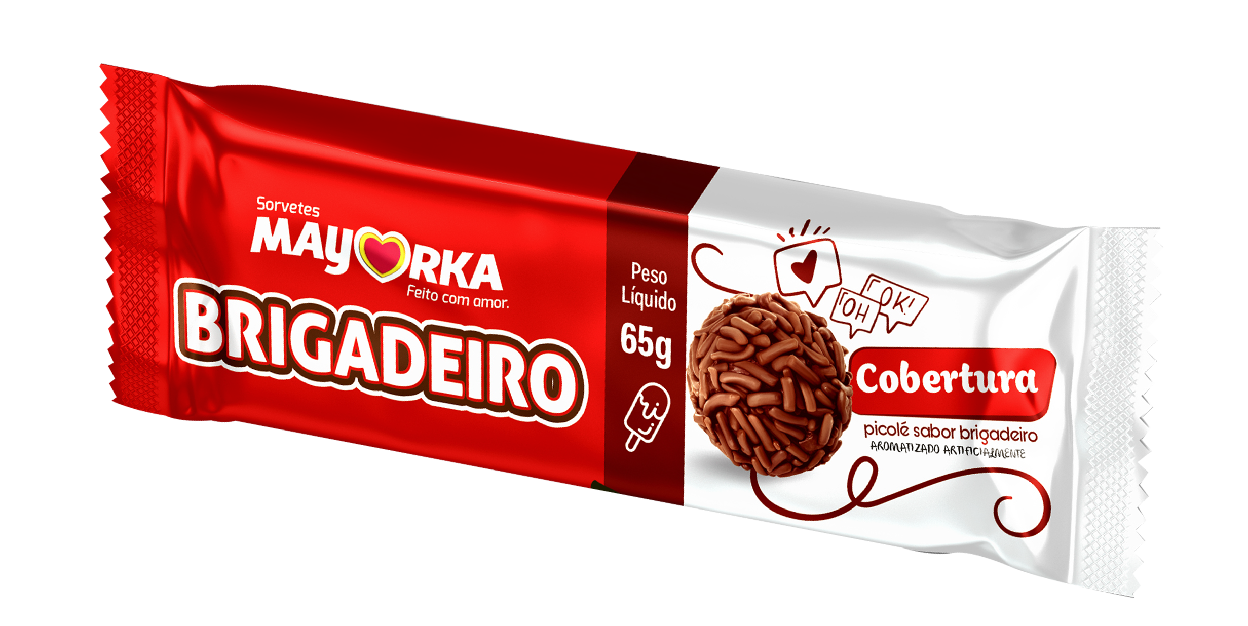 Picolé Cobertura. Com os sabores Tentação, Brigadeiro, Unicórnio e Skimó.