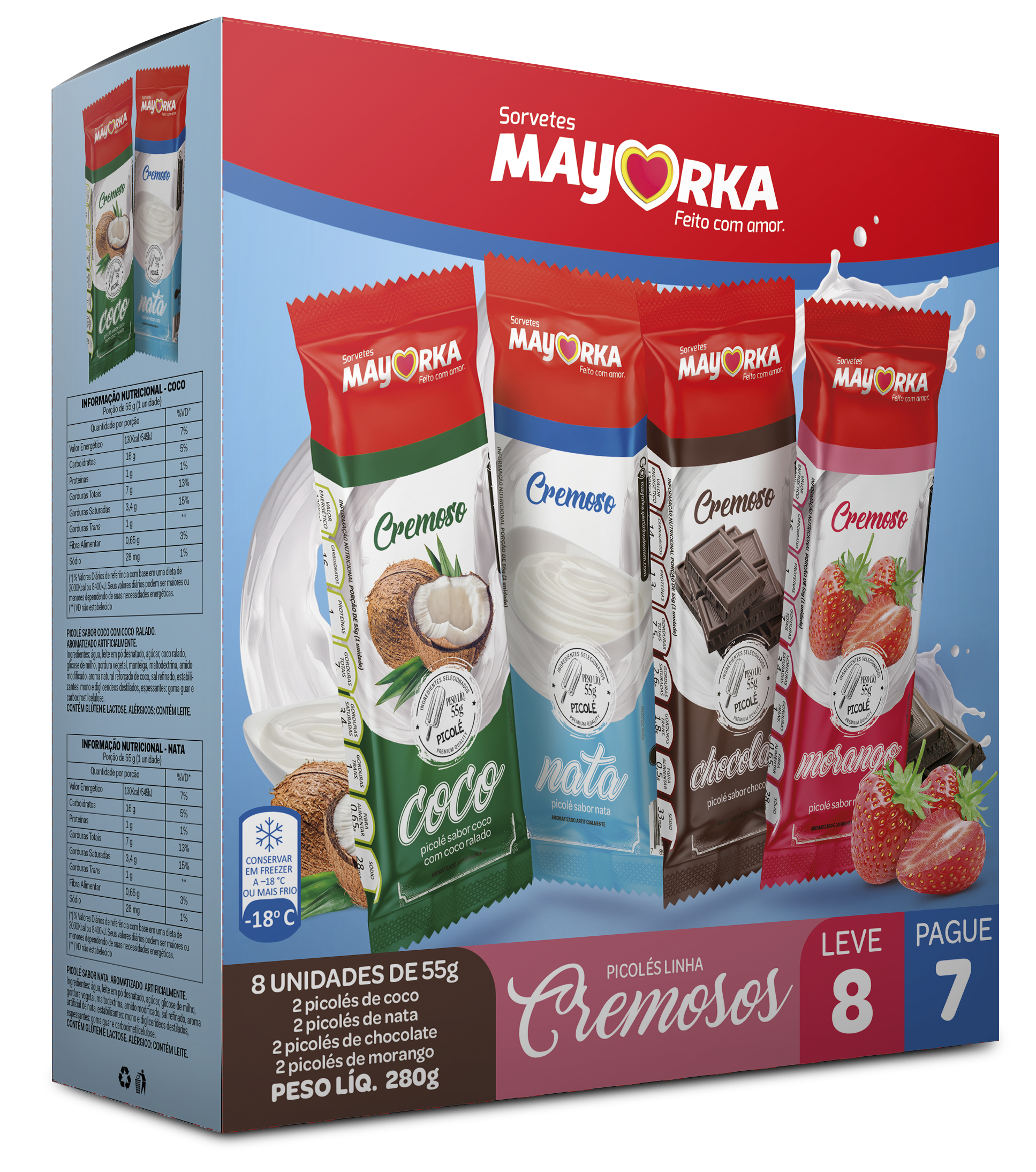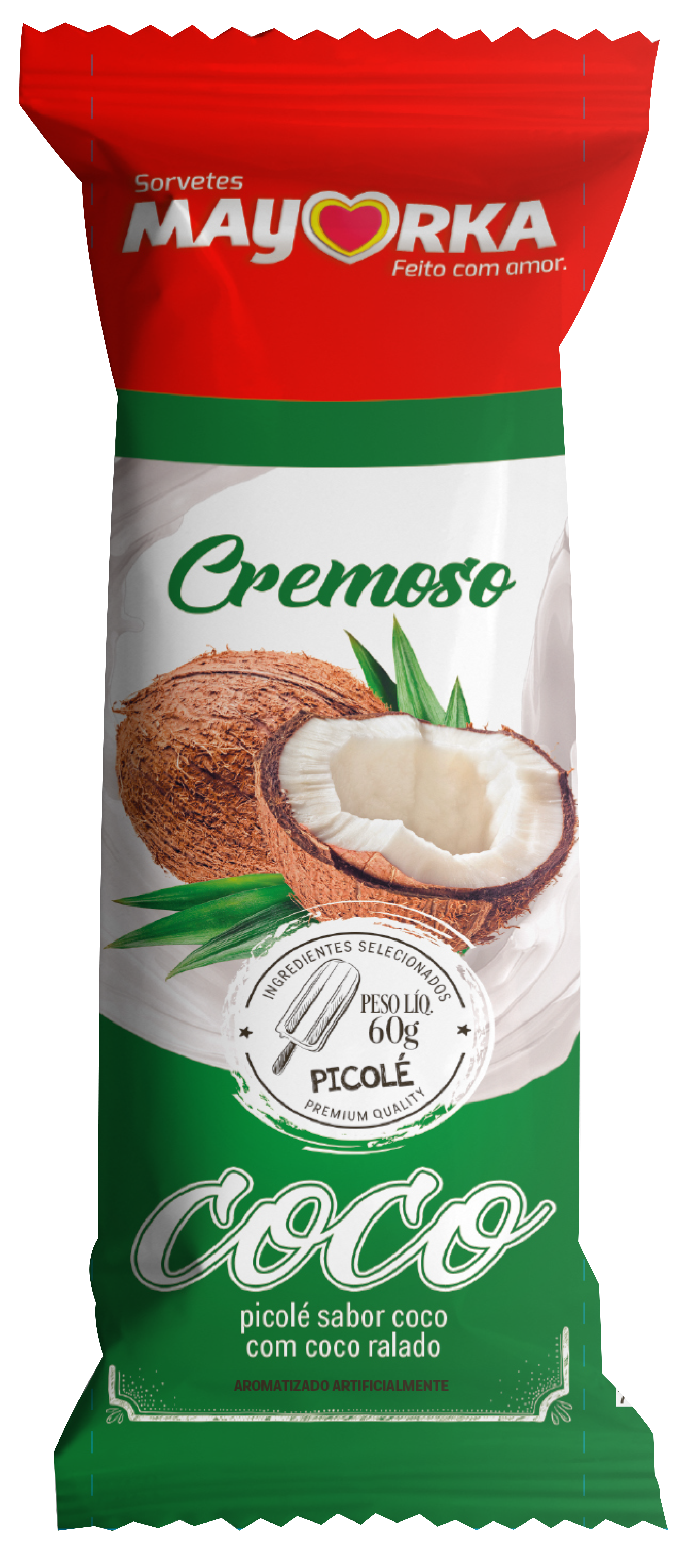 Picolé cremoso para refrescar nesse verão. Sabores coco, morango, nata e chocolate.